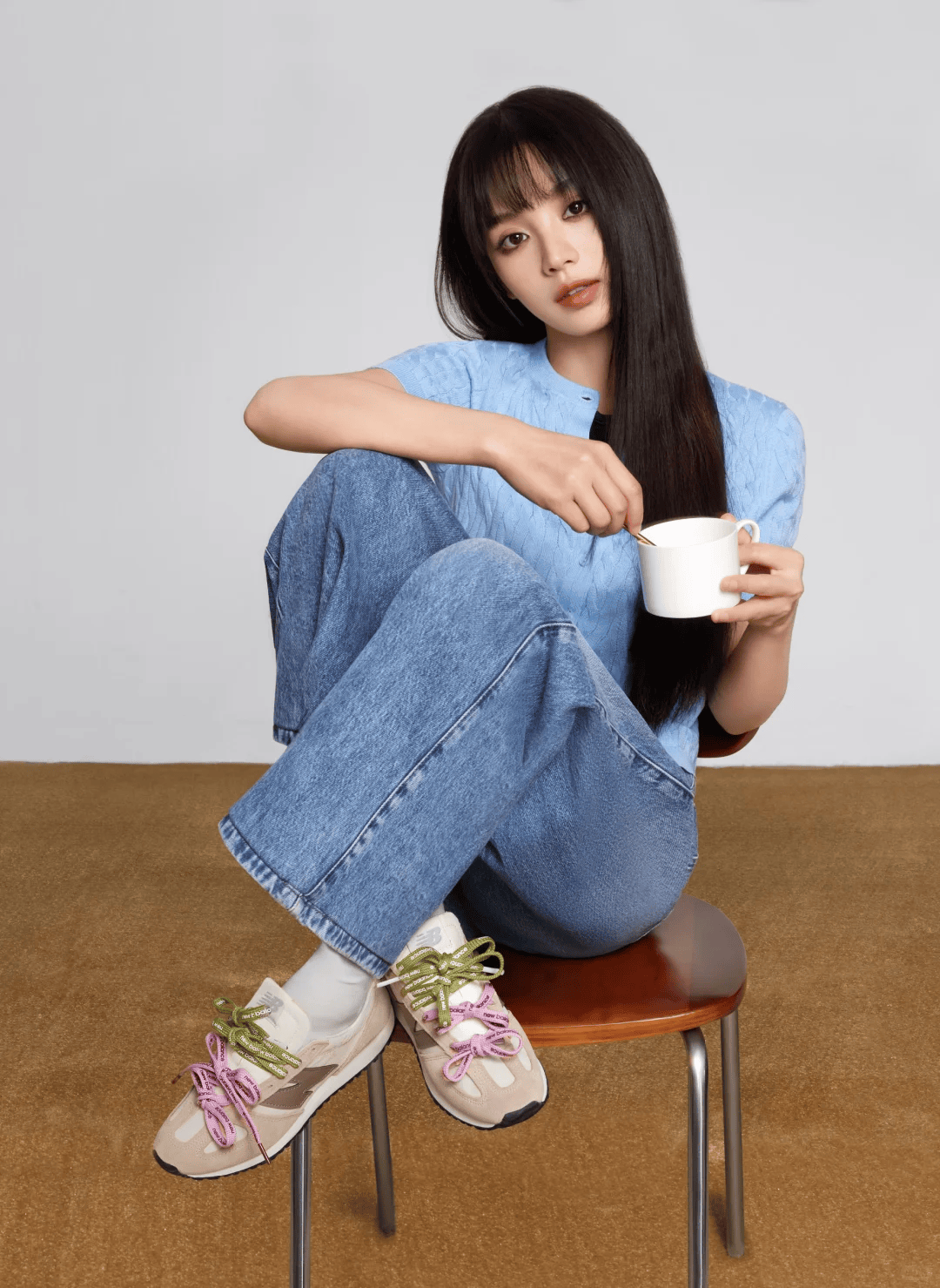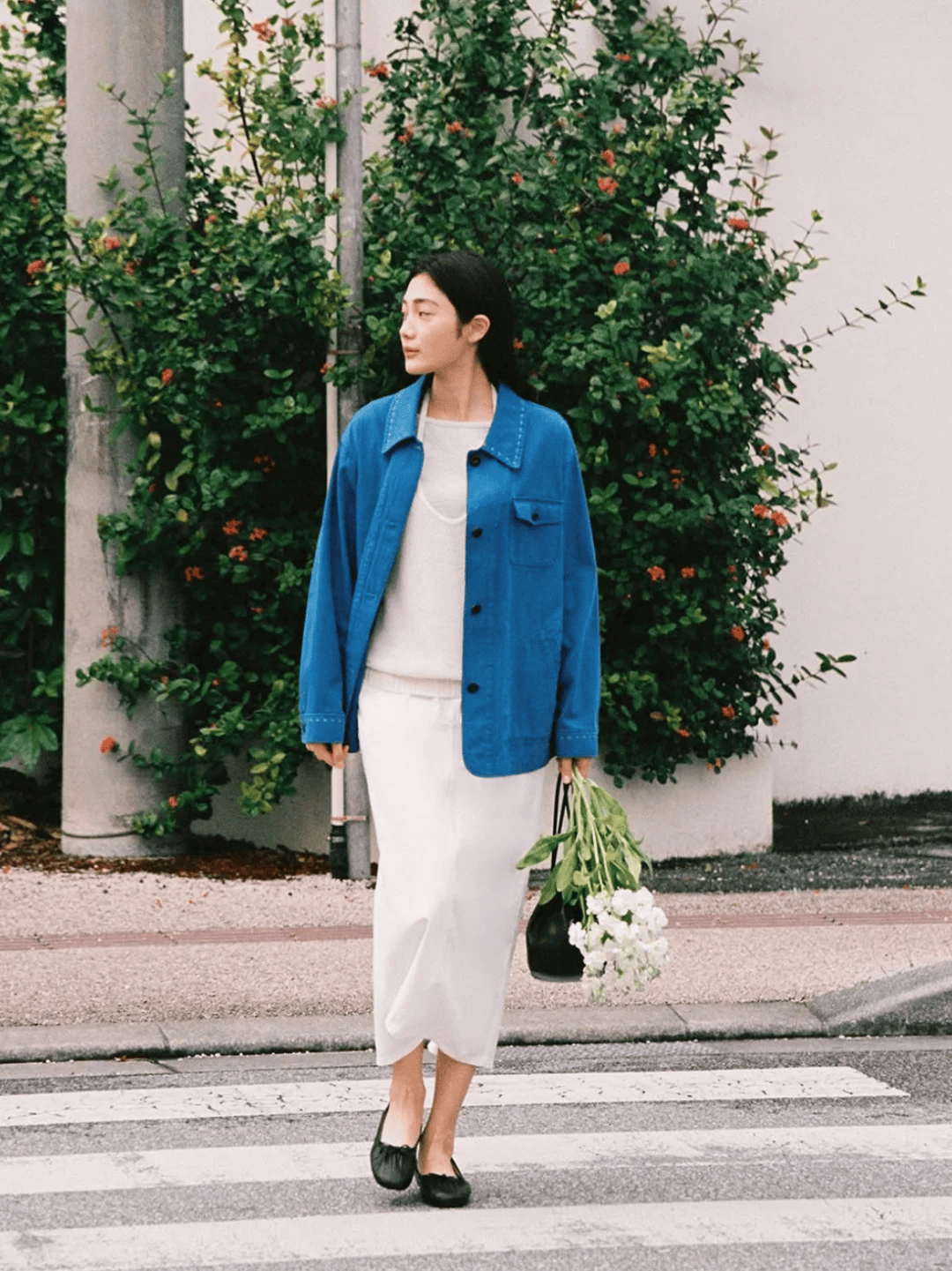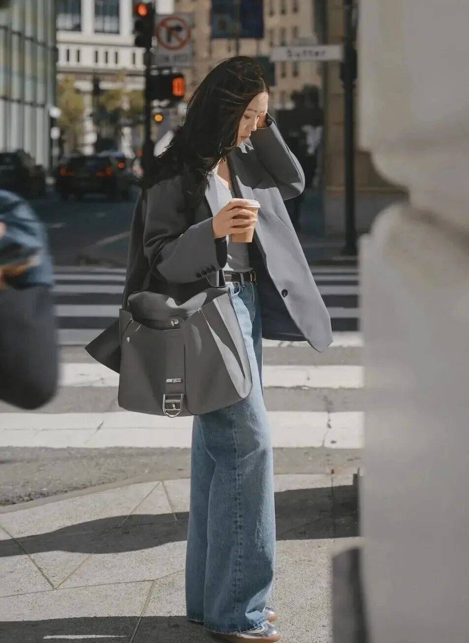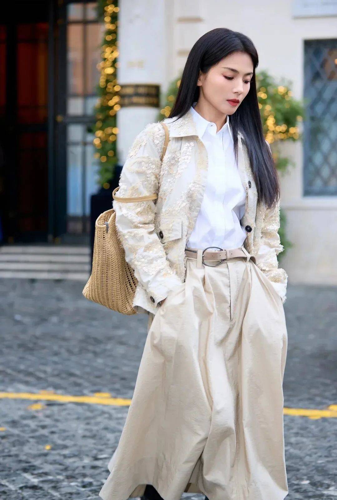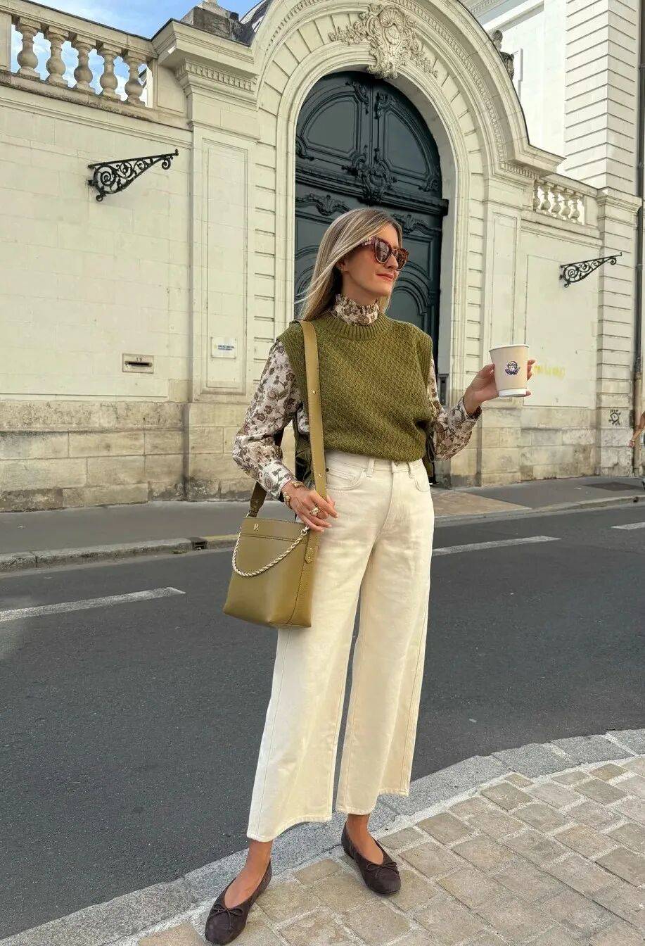 阔腿裤的洒脱,平底鞋的从容,