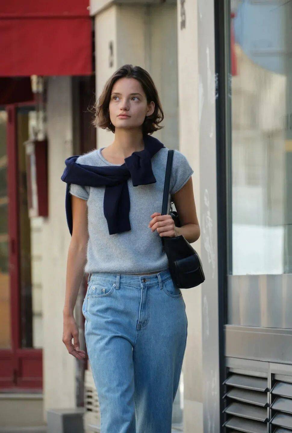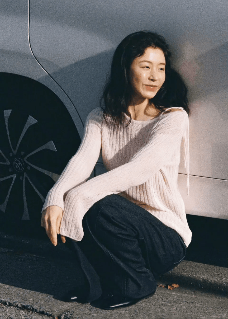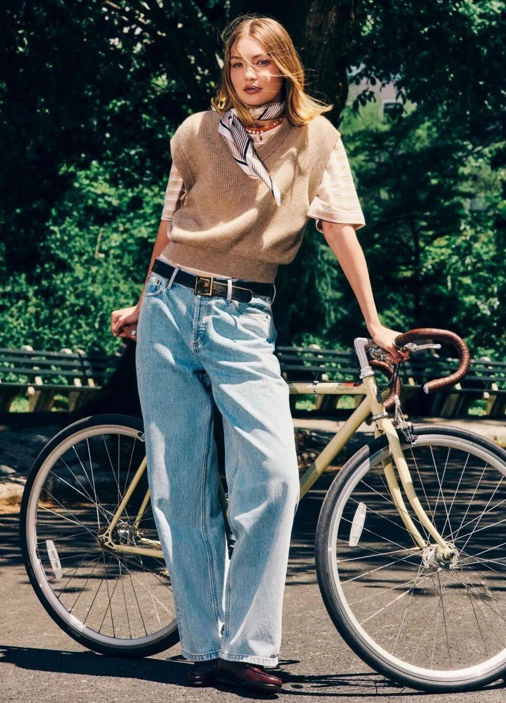 把针织衫的一角轻轻塞进裤腰,随意又时髦。