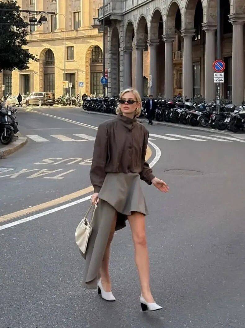 衬衫+半裙,亦是现代女性衣橱里