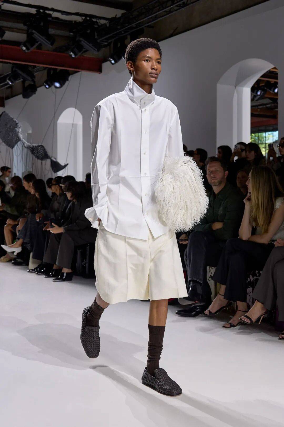 Bottega Veneta 在 2026 春夏米兰秀场上,以纯白空间为基底,大面积运用「云舞白」,摒弃多余装饰,以白色多样材质造出层次肌理,回归品牌一贯的低调奢华,却又都透着温柔又有力量的质感。