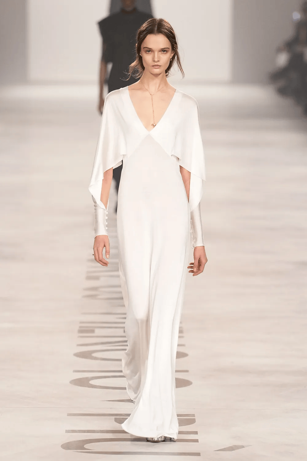 为了避免单一白色带来的单调感,材质混搭也将成为「云舞白」设计的重要手法,哑光与缎面的碰撞、薄纱与针织的融合、皮革与棉麻的搭配,都会让这抹简单的白色产生丰富的层次变化,既有温柔的慵懒感,也有干练的高级感,适配不同的风格需求。