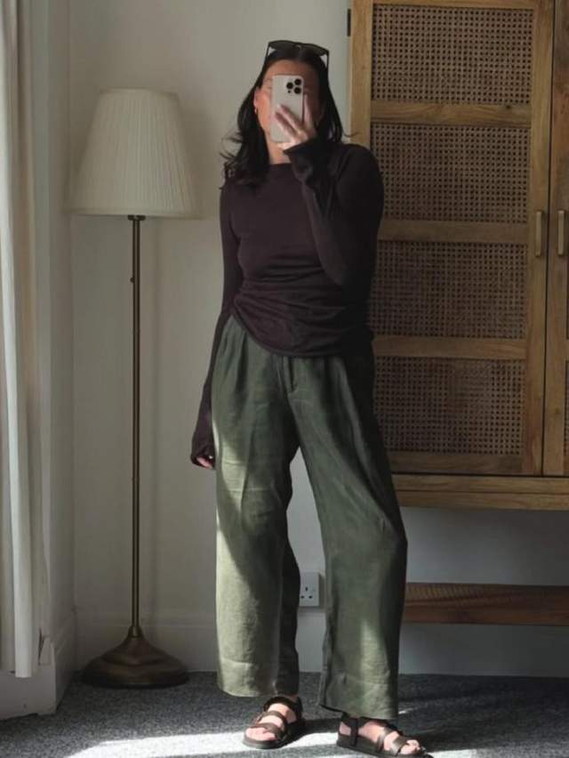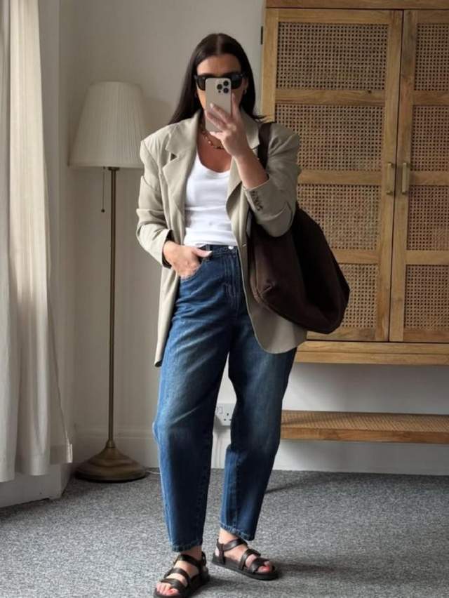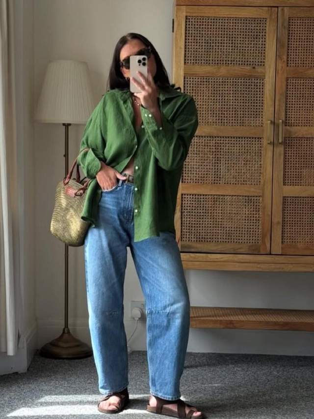 francescalouise 最擅长用基础单品打造层次感,她的穿搭核心在于 “减法” 与 “平衡”。绿色亚麻衬衫搭配水洗阔腿牛仔裤,再踩上皮质凉鞋,慵懒的度假氛围瞬间拉满;黑色高领内搭外搭深蓝色飞行员夹克,下身配黑色阔腿裤与德训鞋,简约中透着干练的通勤气质;深棕色皮质衬衫搭配浅蓝牛仔裤,再点缀豹纹鞋,复古与个性完美融合。她擅长利用大地色系、黑白灰等基础色调构建穿搭框架,再通过材质的碰撞 —— 如亚麻的清爽、皮质的质感、针织的柔软 —— 赋予造型丰富的层次,让基础款也能穿出高级质感。