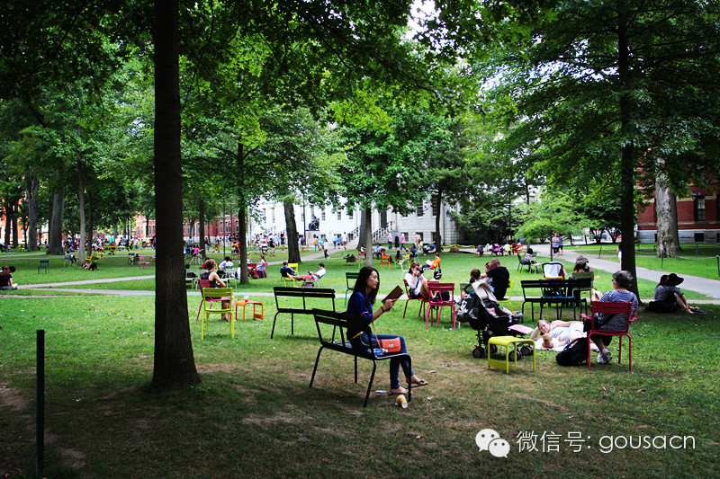 慵懒的周末,哈佛学子在草坪上,有的在阅读,有的在和朋友聊天,有的在运动,很是悠闲。草坪上可爱的松鼠也一点都不怕人。