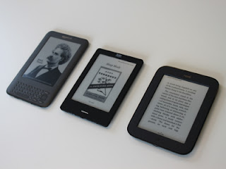 而采用e-ink技术的主流3个eReader正是由制造上述3产品的同样三公司研发的Kindle,Nook和Kobo。Sony的e-ink eReader也很不错,但由于其价格,书库资源等原因,算不上主流产品,就不讨论了。所以主要讨论Kindle 3,Nook Simple Touch和Kobo E-Reader Touch。网站businessinsider有一篇图文并茂的评测,链接在这里。有图有真相,很不错,只是有些观点俺不能苟同。