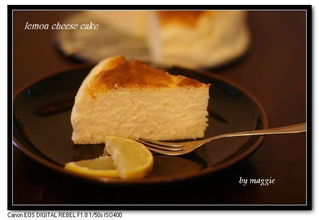 这个也是私房学的。可以参考爱厨的轻乳酪蛋糕,我只是加了新鲜柠檬汁和一点柠檬皮在里面调味。