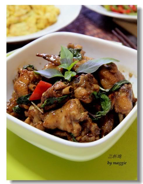 做法:所谓三杯,是指米酒,酱油,麻油这三样。当然,量并不是真的三杯,否则做出来没法吃啦。