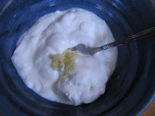 In a bowl, mix yogurt and crushed garlic very well. Add salt and mix until it is smooth.