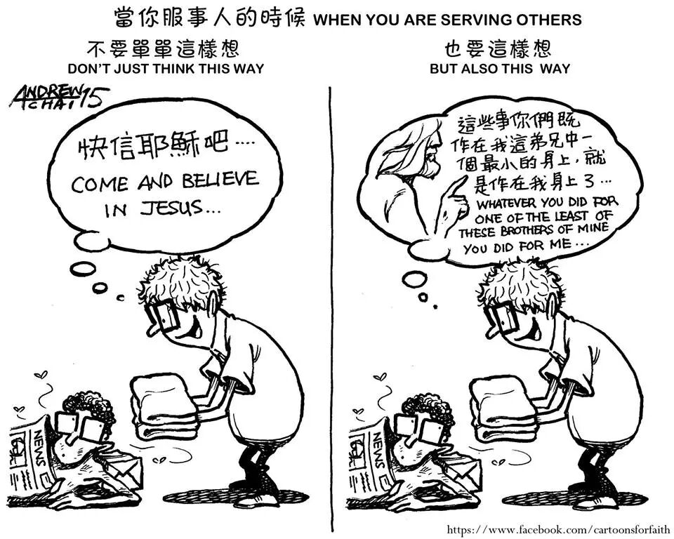 基督教信仰不能成为飘在空中的一套理论,基督徒不能只会夸夸其谈却不用生活来见证自己的信仰。当基督徒面对生活中的种种现实时,也会有与世人同样的想法。然而,我们需要跟着圣经的教导不断归正。那么,如何把基督教信仰通过生活真实地活出来呢?蔡颂辉牧师最近发表的这10幅漫画或许能够给你帮助。