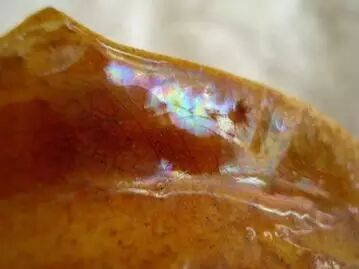假“蛤蜊光”也和假“包浆”、假“火石红”一样,不够自然,缺少灵气。假“蛤蜊光”显得呆板生硬,而真“蛤蜊光”在侧光下若隐若现,如虹似霞,像是具有生命一样,闪闪烁烁,显得十分灵动。说得通俗一点,假“蛤蜊光”和假“火石红”、假“包浆”一样,是死的;而真“蛤蜊光”是活的。