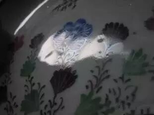 “蛤蜊光”对“瓷彩”不同等,快慢亦有异,如蓝彩出现“蛤蜊光”现象就较快;瓷器所处的外界环境情况不同,亦有快慢。尤其是明万历年间的“红、黄、绿?三色的“大明彩”,不仅在彩釉上能见到这种光彩夺目的“蛤蜊光”,有时连牙白色的底釉上,也有这种令人目迷神移的光晕闪现。由于这种光晕显得珠光宝气,因此也有人把它称做“蛤蜊珠光”。