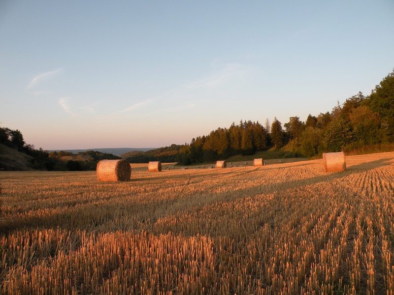草堆树木和粮仓