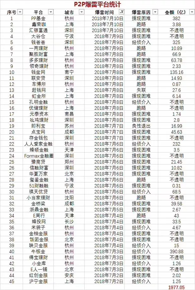 先从债券开始,然后股票、基金、信托,一个都没有跑掉,从7月开始,爆雷P2P行业又达到了顶峰。
