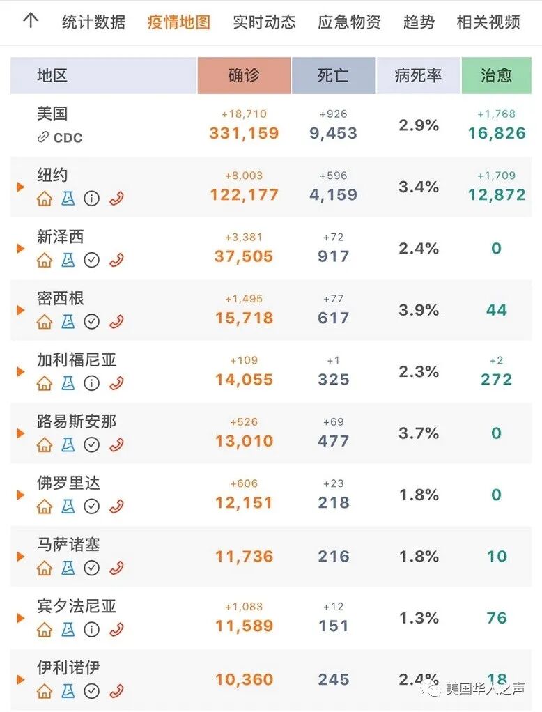 截止2020年4月5日作者小侠发稿时,“一亩三分地”华人志愿者网站的统计数据显示,全美境内共有331,159名新冠病毒感染者,死亡人数高达9,453名。其中纽约州疫情最为严重,有122,177名患者,死亡人数高达4,159名。美国疫情排名前十名的州,除了佛罗里达州和马萨诸塞州是由共和党人州长执政,其余八个州都是由民主党人州长执政!