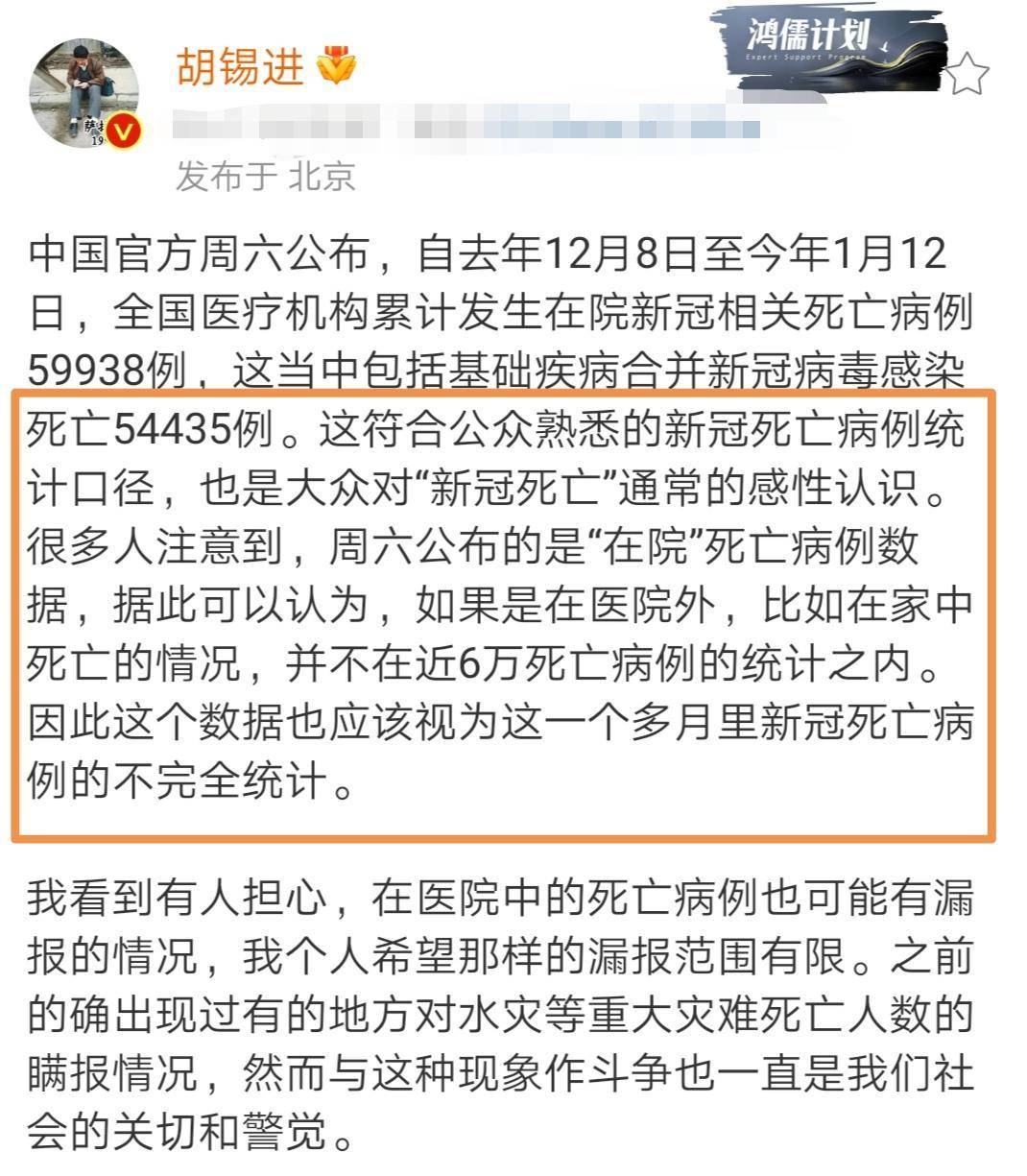 尴尬!胡锡进直言公布新冠死亡数据符合预期,网友:“就这五万多全国都烧不过来?”、“6万会让全国的火化炉排不上号吗?”