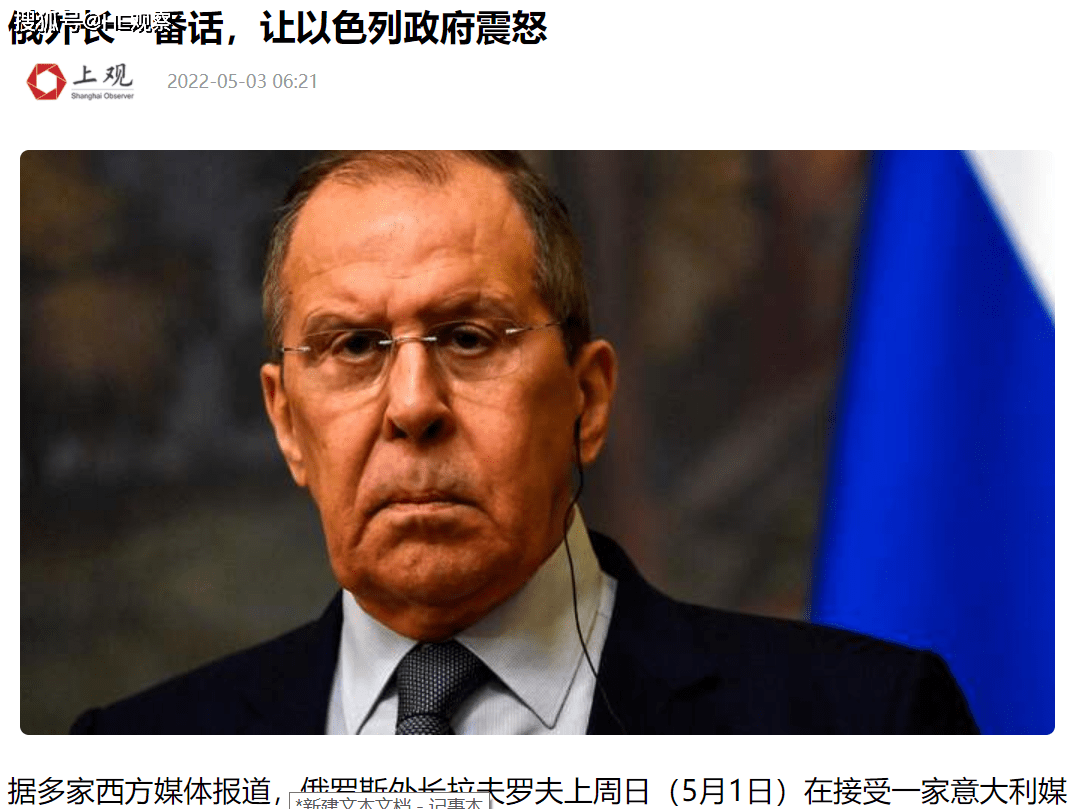 在战争爆发后,俄罗斯外长拉夫罗夫即便不算是出尽了风头,也算是曝光率增加,不过,在发表了那番泽连斯基、犹太、纳粹的高论,直接惹火以色列,迫使普京总统向以色列政府道歉后,不仅拉夫罗夫,连整个俄罗斯外交部都变得沉寂了,俄罗斯总统新闻秘书佩斯科夫更多地扮演起了俄罗斯外交部发言人扎哈罗娃的角色。