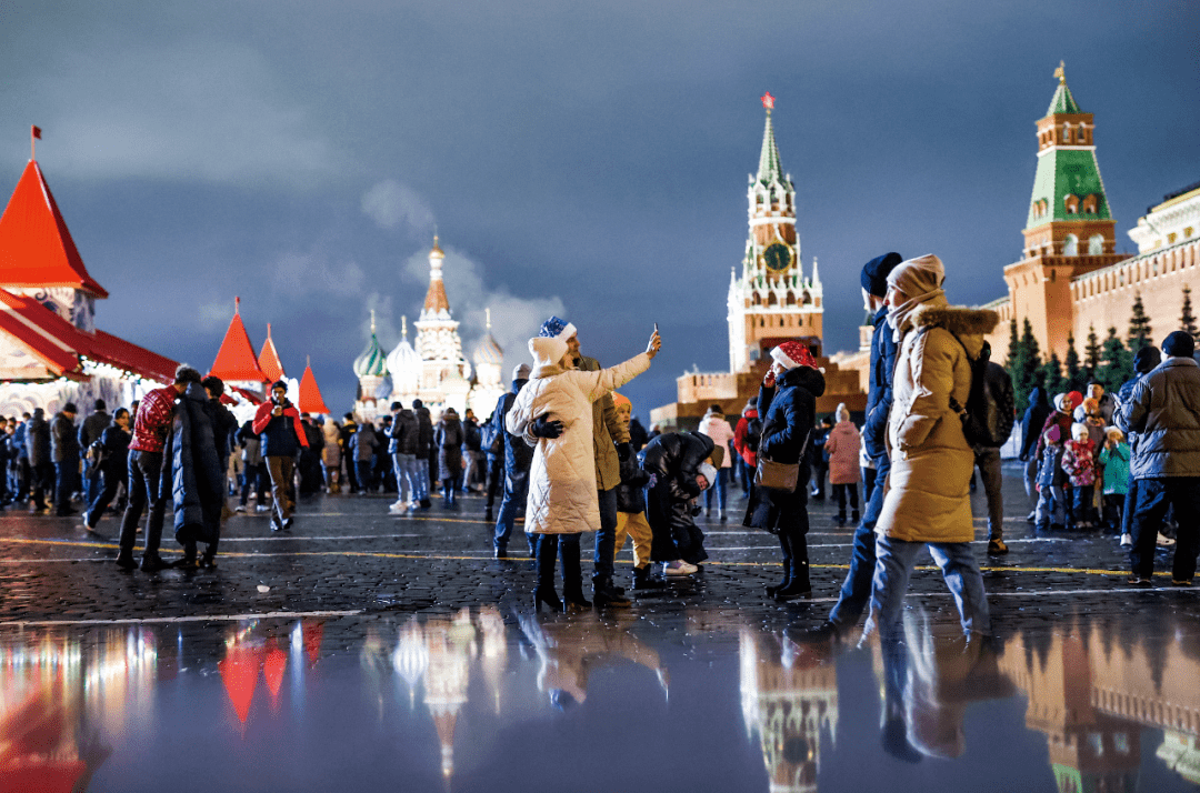 2022年12月31日晚,人们在莫斯科红场上迎接新年。图/视觉中国