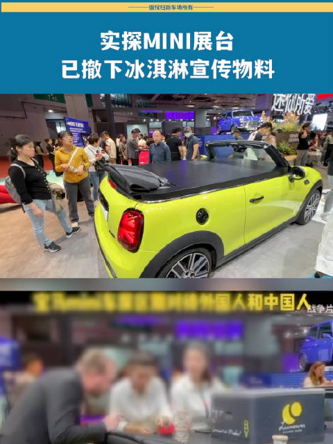 ▲宝马MINI展台 中新经纬牛朝阁摄20日,“宝马MINI展区被指区别对待”相关话题登上微博热搜,引发了网友的吐槽,“这和前两天宝马喊出的口号(宝马家在中国)形成鲜明对比”“硬生生把一批潜在客户劝退,一个冰激凌引发的惨案”。