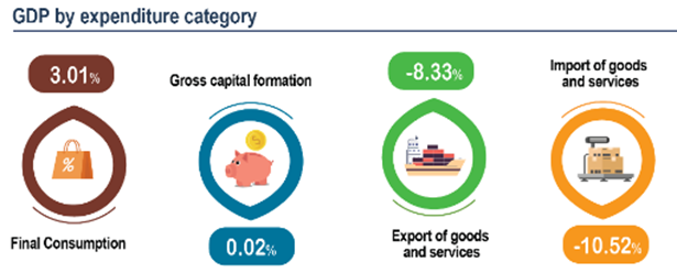 从结构上来看,一季度越南最终消费的增长情况相对尚可,同比增长了3.01%;而其资本形成(投资)同比仅增长了0.02%,对其GDP的拉动几乎可以忽略不计;