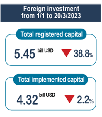 据越南统计局数据,2023年1季度,海外投资者对越南投资总额为54.5亿美元,同比大幅下降了38.8%。