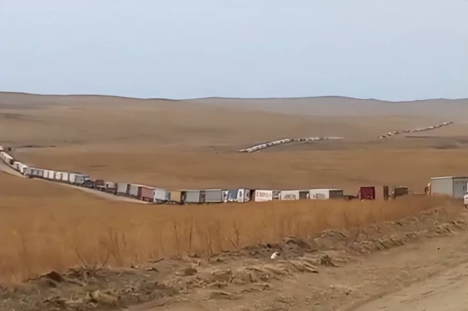 近日,约700辆重型卡车等待通过中俄边境上的后贝加尔斯克口岸,它们排成了一条“长龙”,拥堵路段长达11公里。