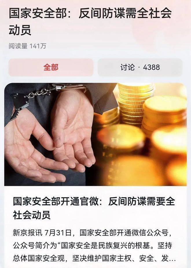国家安全部发布了一份紧急通告,号召全民参与反间谍行动。这一举措表明事态已经进入严重阶段,需要广泛的社会参与和警觉。反间防谍 人人有责