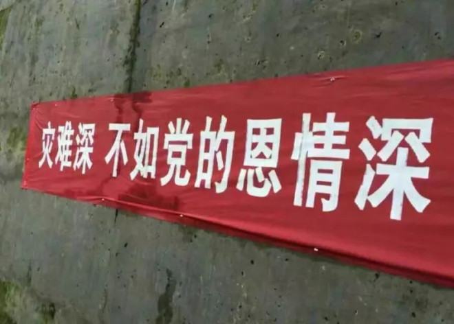 有居民挂“灾难深,不如党的恩情深”红布条,反讽中共不把中国人性命当一回事