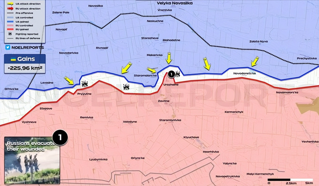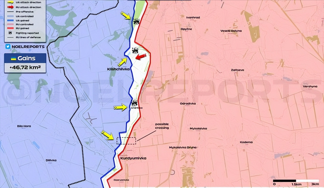 与此同时,乌军第31独立机械化旅继续向斯塔罗马约尔斯克( Staromaiorske )以西推进,从两侧逼近普里尤特内(Pryyutne),同时将攻击轴心延伸至扎维特内(Zavitne)。
