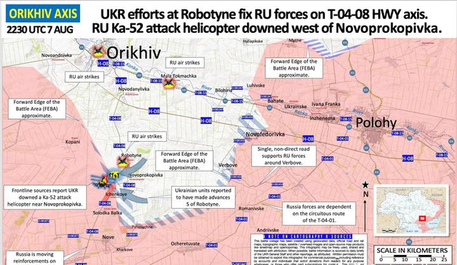 扎波罗热西线,有消息称罗伯蒂尼已经完全被乌军攻下和控制,并巩固了T-04-08 高速公路 沿线上的原俄军阵地,但我并没有看到视觉上的证据。