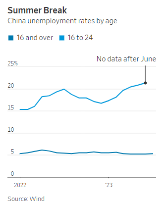 与此同时,中国国家统计局宣布,将暂停公布中国青年失业数据,理由是计划重新审视统计方法。