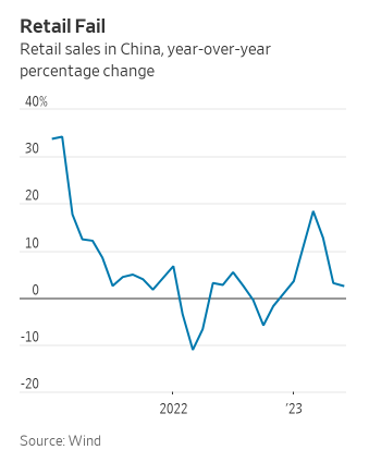 周二公布的数据显示,中国7月份消费者支出、工业生产、公共和私人投资等指标均大幅低于预期,这为中国经济的坏消息雪上加霜。