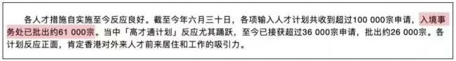 离我们最近的香港地区:仅今年上半年,香港各项输入人才计划共收到超过10万宗申请,已经批出的达6.1万宗,而申请香港身份的人中约有95%都为内地人。