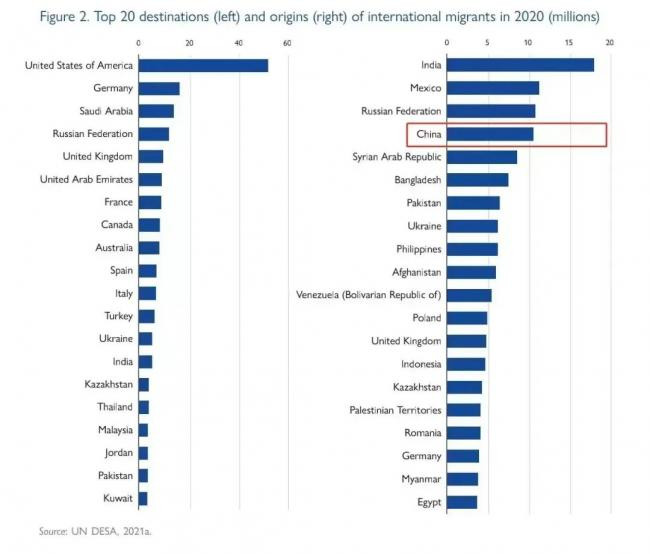 而根据《2022世界移民报告》,中国移民人数已经超1000万,是世界第4大移民流出国。