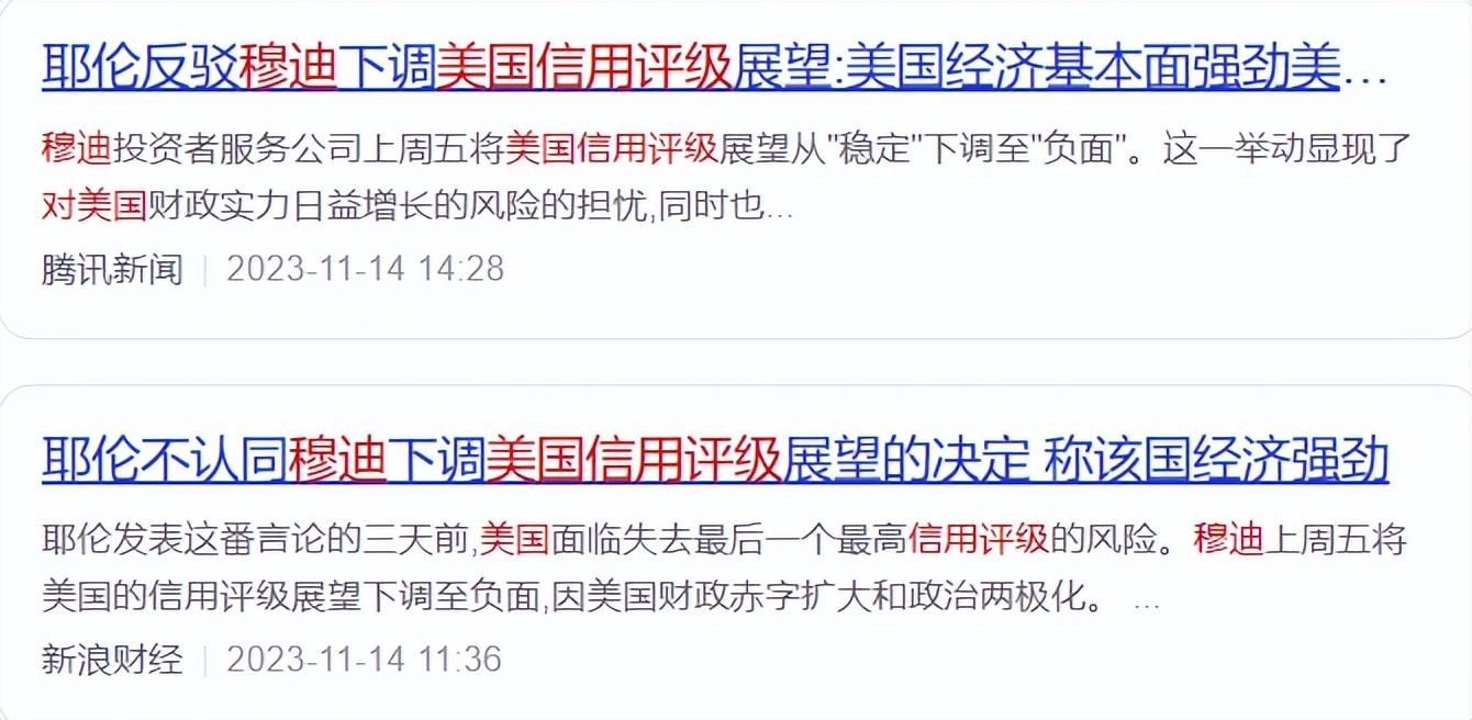 但穆迪在11月中其实也对美国信用评级下调至负面