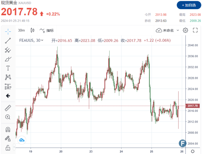 GDP数据发布后,现货黄金短线走低8美元,交投在2010附近,但很快短线回升逾10美元,一度站上2020,现报2017.78美元/盎司。