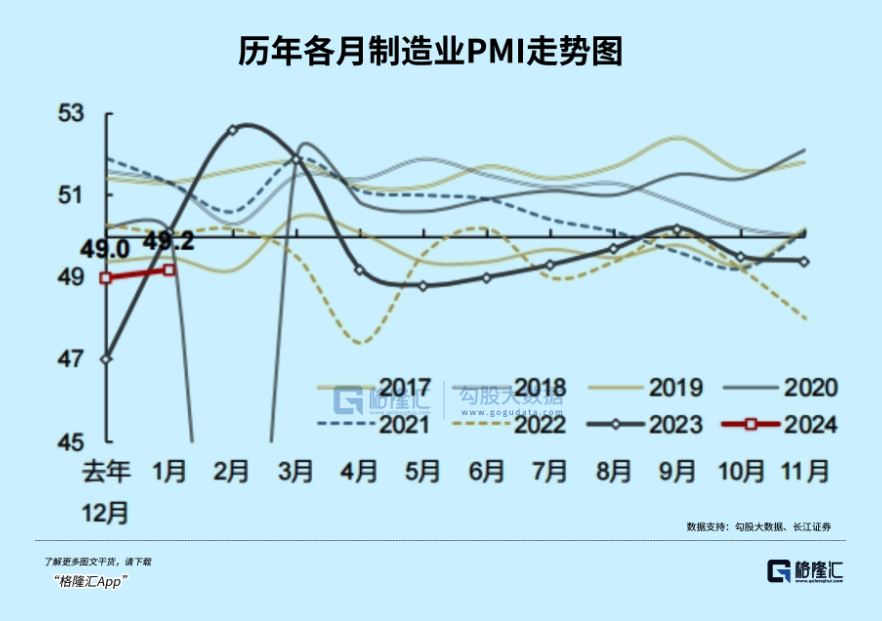 1月制造业PMI为49.2%,预期49.2%,前值49%。这一表现略高于季节性表现。要知道,2010-2022年1月环比均值为-0.3%,春节假期分布相近的2016年、2018年、2019年分别为-0.3%、-0.3%、0.1%。