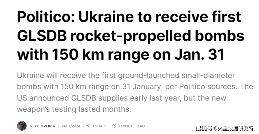 《Politico》还披露,美国早在国会开始推迟批准 2023 年秋季为乌克兰提供新资金之前的 2023 年 2 月,宣布了一项包含 GLSDB 的一揽子援助计划。
