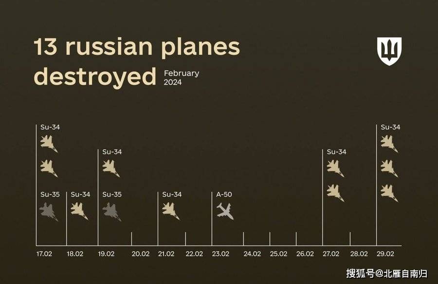13架战机包括9架苏-34战斗轰炸机,这款机型装备数量并不是非常多,到去年为止也不过装备了150架。如果都照乌克兰这种击落速度,估计再过半年俄军苏-34机群将不复存在,此外还有2架苏-35战斗机,以及1架A-50空中预警机。