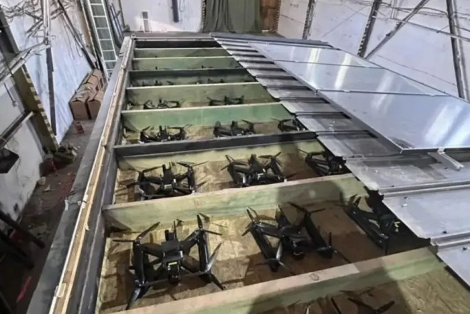 而乌军把这些小型FPV无人机,藏入了卡车的顶棚。在所有特工全部撤出俄境内以后,再通过“星链”卫星、俄罗斯电信网络,远程操控,发起了这场奇袭!