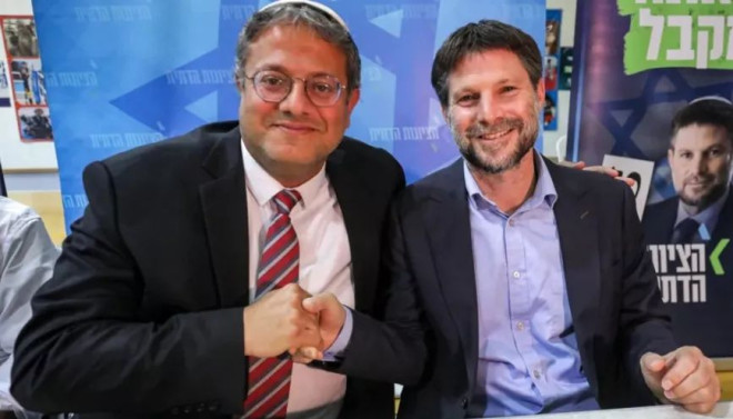 以色列财政部长斯莫特里赫(右)和国家安全部长伊塔马尔·本-格维尔。图源:英媒