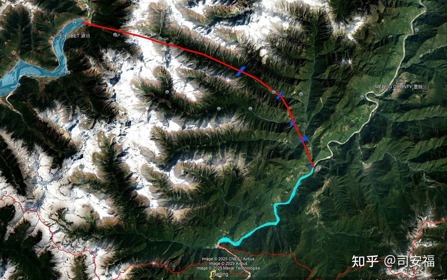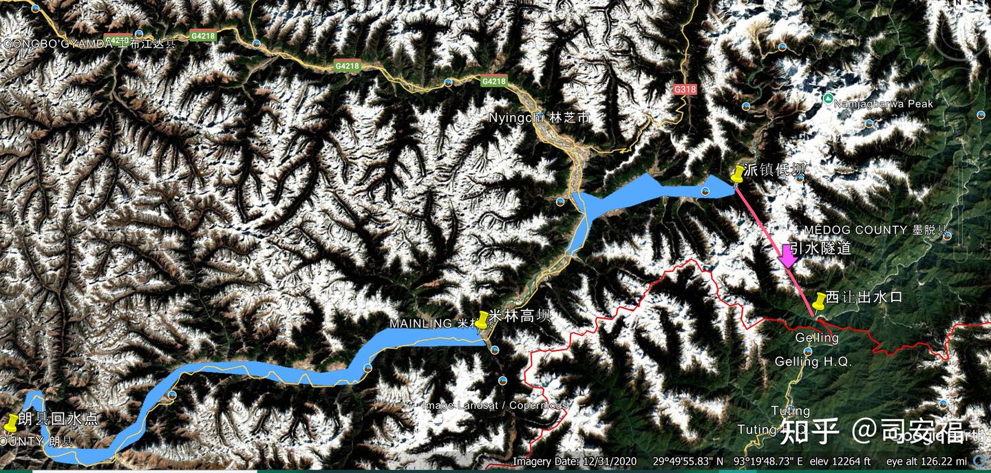 下面政治部分,墨脱水电站排水口压着中印实控线可以最大限度利用水头发电。好处是明显的。有人说这个工程会引起印度反弹,加剧边境紧张。实际上这纯属多虑。 墨脱水电站只截流了派镇以上雅江年600亿立方米径流发电, 出境之前还是汇入了雅江,并不改变流出境的水量。墨脱中印实控线的径流出境流量是年1400亿立方米。中间有帕隆藏布江汇入和大拐弯巨大的降水补充。印度没有任何理由阻挠。