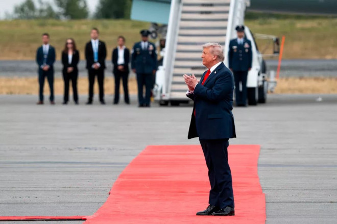 本月,在安克雷奇的埃尔门多夫-理查森联合基地,特朗普总统等待迎接俄罗斯总统普京。