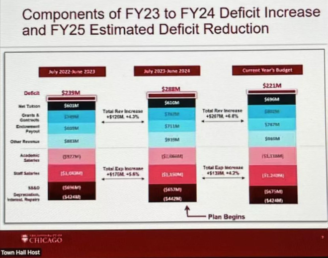 2023-2024 学年至 2024-2025 学年,芝加哥大学收入增长了 6.8%,成本增长了 4.2%。相比之下,2022-2023 学年至 2023-2024 学年,收入增长了 4.3%,成本增长了 5.6%。