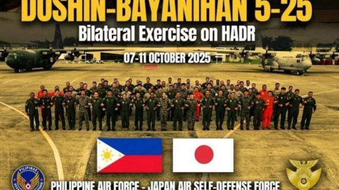 菲律宾国防部在一份声明中表示,“Doshin-Bayanihan 5-25”双边演习将于10月7日至11日在宿务举行。菲律宾空军和日本航空自卫队将在宿务岛麦克坦的贝尼托·N·埃布恩准将空军基地参加此次训练演习。