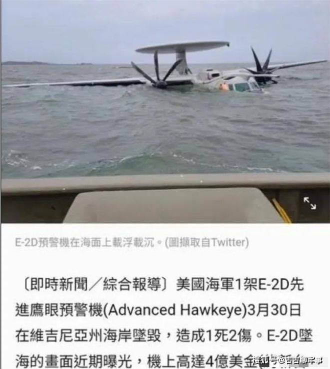 更难绷的是,通过溯源后发现,这还是个3年前的“老图”:2022年,一架美军E2D预警机在弗吉尼亚海岸坠毁,造成1死2伤。