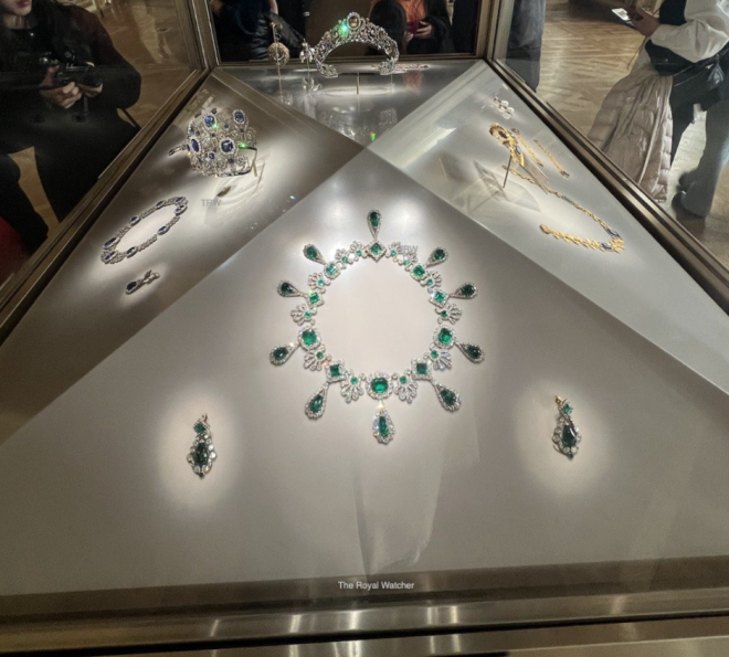 一套属于拿破仑·波拿巴第二任妻子Marie-Louise皇后的配套珠宝——包括一条祖母绿项链和耳环;