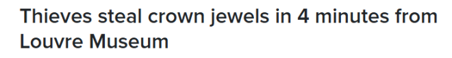 法国卢浮宫惊天劫案: 8件皇室珠宝4分钟被盗! 窃贼轻松溜走!