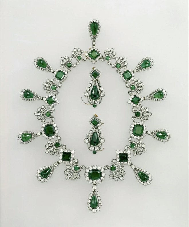 据罗浮宫官网介绍,这顶皇冠曾属于拿破仑三世妻子欧仁妮皇后,饰有金色雄鹰,镶嵌着1354颗钻石和56颗祖母绿。