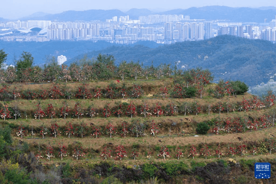 延安市宝塔区桥沟街道烟洞沟村苹果园景色。图源:新华社