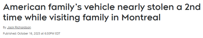 美国女子来加拿大车被偷 已锁定窝点去报警 事件发展让她惊呆
