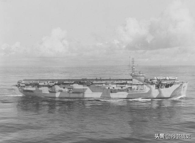 卡德号是美国在第二次世界大战期间建造的“博格”级护航航母,船体为标准的货船船体改装,卡德号满载排水量15390吨,长151.2米,采用蒸汽轮机驱动,最大航速18节,只能搭载28架舰载机,防空火力也很贫弱,只有2门127毫米防空炮,几门40毫米博福斯和20毫米厄立孔高炮。